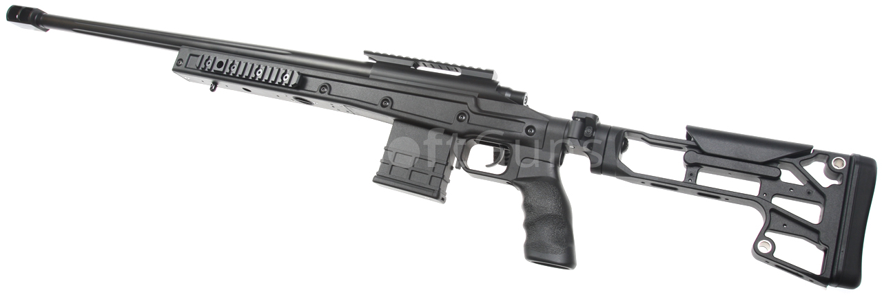 Více informacíAirsoft sniper R700 MDT, Black, Cyma, CM.707. Manuální airsoftová zbraň. Odstřelovací puška Airsoft sniper R700 MDT [CM.707] od firmy Cyma se sklopnou pažbou v černé barvě. Tato zbraň nápadně připomíná modernizovanou verzi klasické pušky Remington M700 s modulárním pažbením kanadského výrobce MDT.