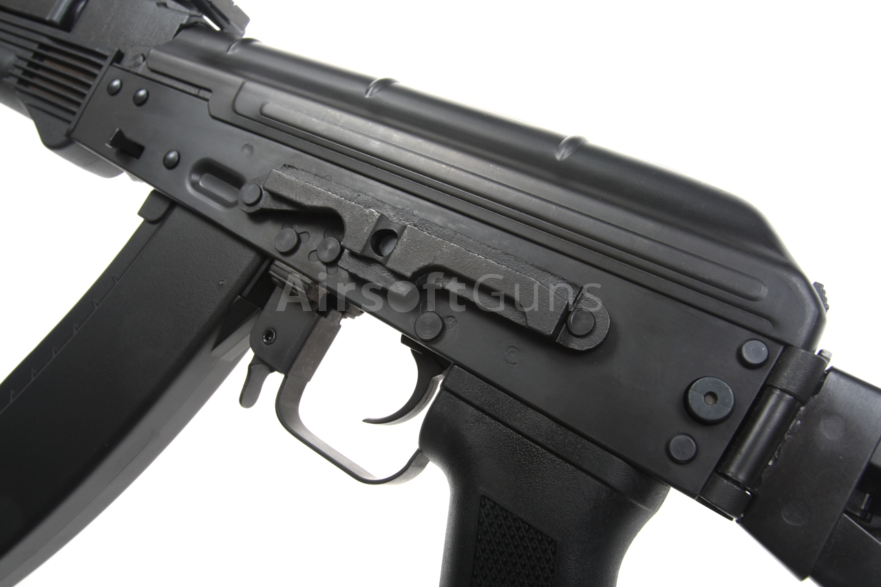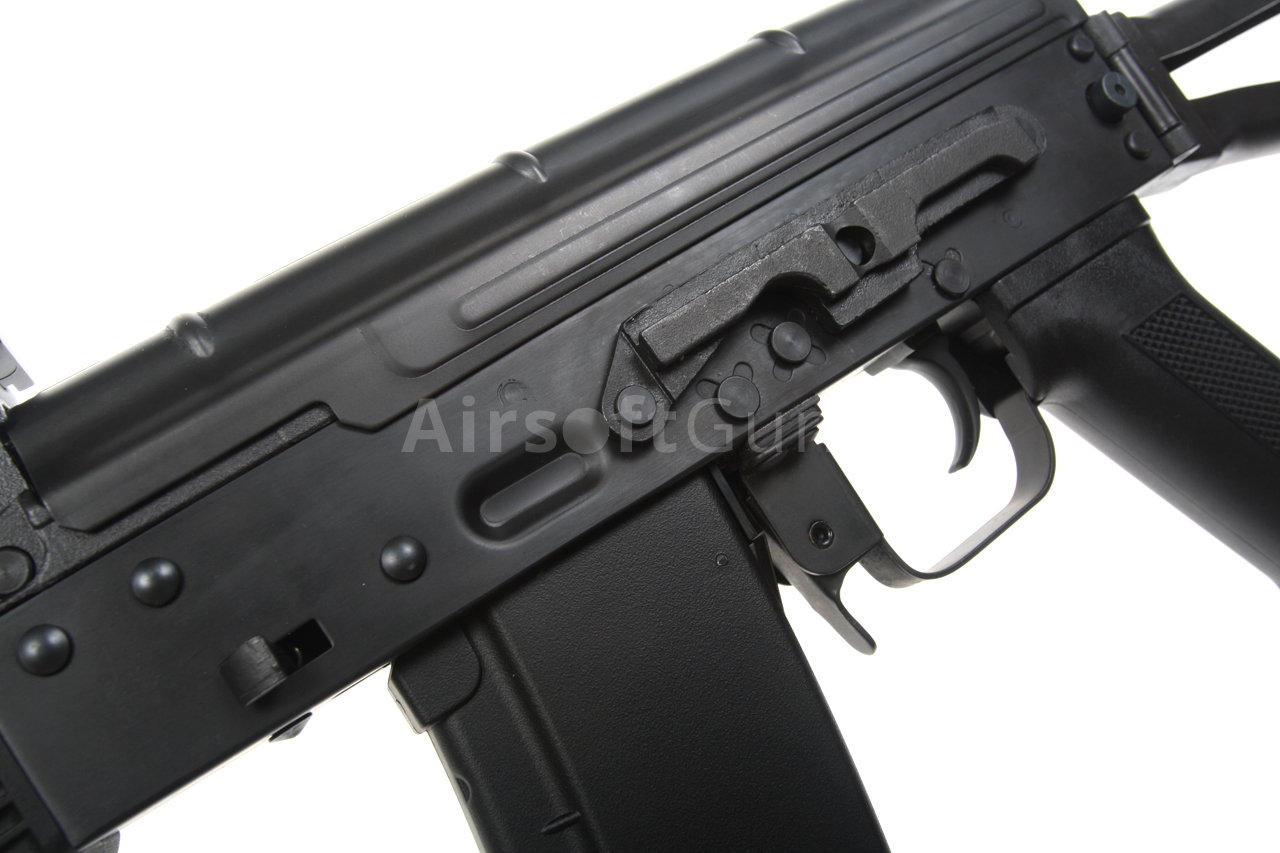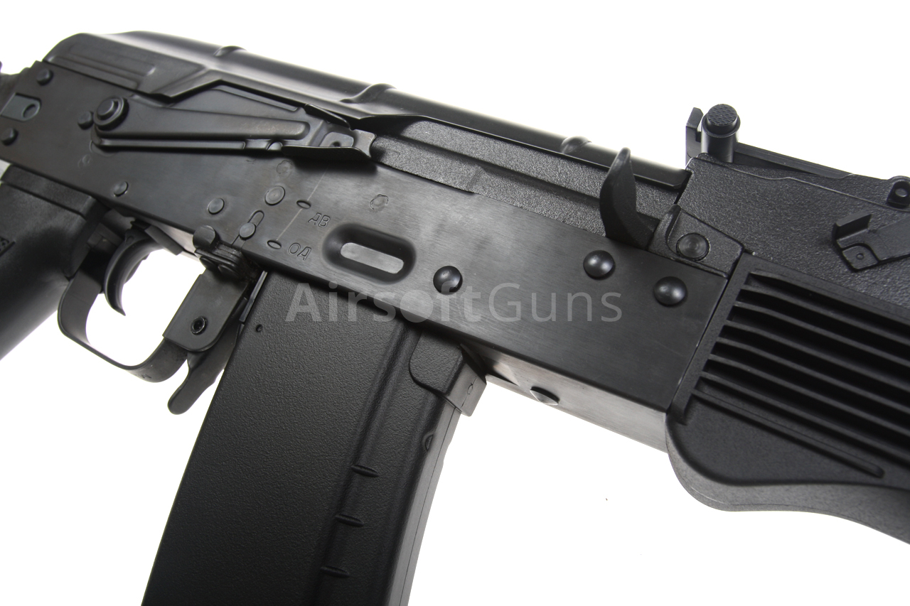 Tato varianta populární zbraně série AK (Avtomat Kalašnikova) z nové a nejvyšší edice Cyma Platinum nabízí veškeré kovové díly z ocele. U nižších produktových řad, nebo u jiných výrobců, najdeme mnoho kovových dílů ze slitiny ZnAl, ale u tohoto modelu je vše kompletně z ocele, což zvyšuje odolnost zbraně a dodává jí to na celkové kráse a realističnosti. Tato replika navíc obsahuje i full upgrade vnitřní díly, které běžné zbraně ostatních značek nenabízejí. Zajímavostí je i provedení QSC (Quick Spring Change), které umožňuje rychlou výměnu pružiny bez nutnosti rozdělat mechabox. Výrobce Cyma opět prokázal, že stále intenzivněji směřuje i do segmentu prémiových airsoftových replik a přitom umí zachovat vynikající cenu pro zákazníky.