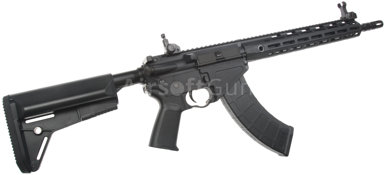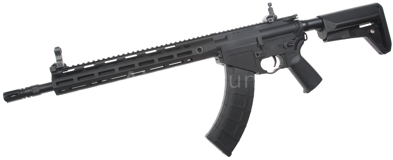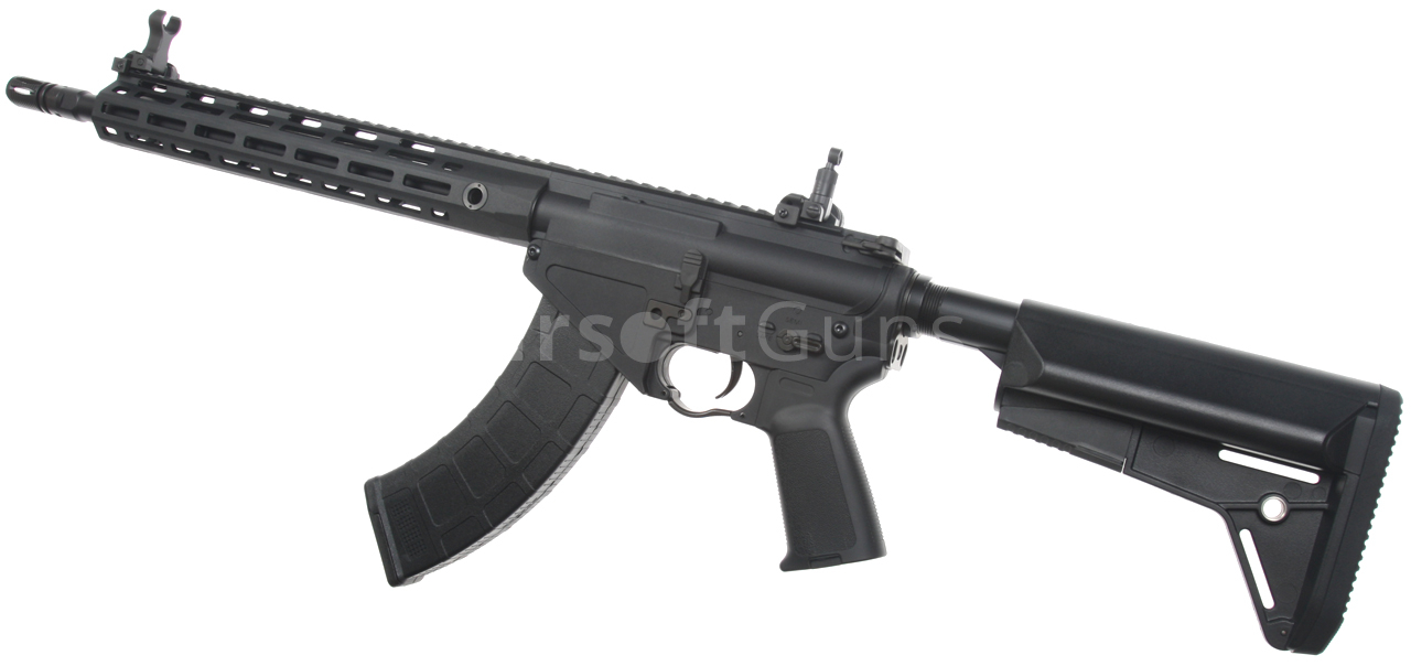 AR-47 je hybridní model, který z velké části využívá rozšířené díly zbraní typu AR-15. Ovšem jeho spodní tělo, včetně zásobníkové šachty, je uzpůsobeno pro velké zásobníky typu AK. Zbraň pochází z nejnovější edice, která má nově zpracované tělo s funkčním výhozným okénkem, táhlem závěru a plechovou imitací závěru. Airsoftová replika zbraně AR-47 (někdy označováno jako KAC SR-47) s plastovým M-LOK předpažbím (délka 13 palců), taktickou zásuvnou pažbou Crane stock (6 poloh nastavení), pistolovou pažbičkou HK416 a sklopnými mířidly KAC, mezi které je možné připevnit různé optiky nebo kolimátory. K uchycení popruhu slouží oboustranné ocelové poutko mezi tělem a trubicí pažby. Kovová vnější hlaveň (délka 16 palců) je osazena klasickým kompenzátorem, který je našroubovaný na 14 mm levotočivém závitu.
