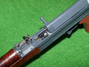 Co se týče přepínače střelby, tak ten je jako u originálu a má tři polohy. Přepínač svisle dolu zajištěno (safe), k sobě jednotlivě (Semi-auto) a směrem dopředu dávka (Full-auto). Přepínač jde samozřejmě lehčeji než u originálu, ale v každé poloze je fixován, takže nemůže dojít k samovolnému přepnutí.