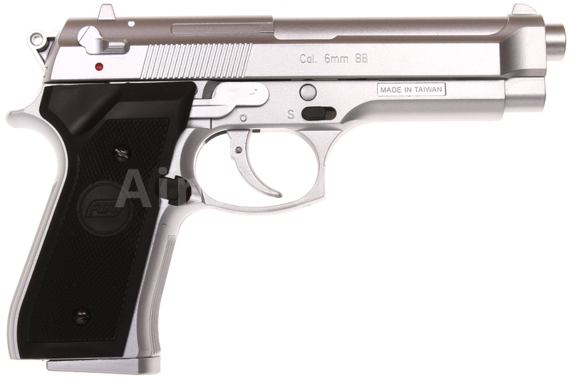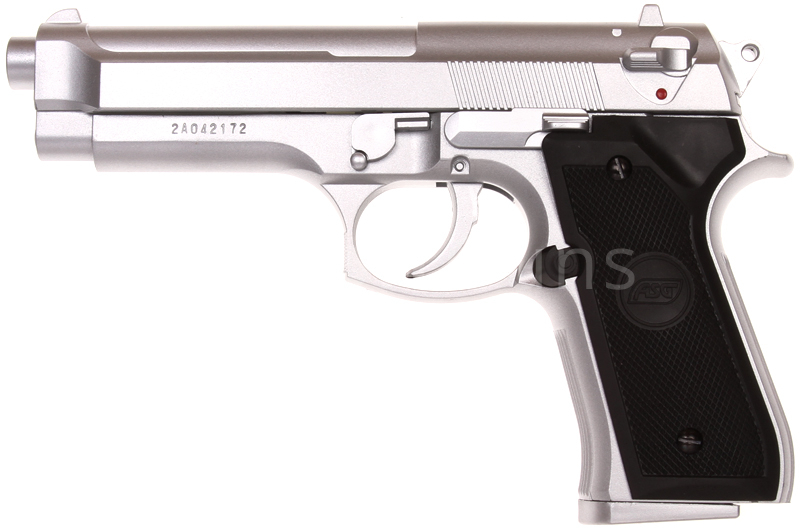 Manuální airsoftová zbraň. Replika modelu Beretta M92FS v chromovém provedení vyráběná v licenci ASG. Realisticky zpracovaná pistole, která se díky vysoké úsťové rychlosti řadí mezi nejvýkonnější krátké manuály v naší nabídce. Příjemnému a jistému držení napomáhá důmyslně zdrsněná pažbička. Při samotné střelbě jistě oceníte i barevně zvýrazněnou přední mušku.