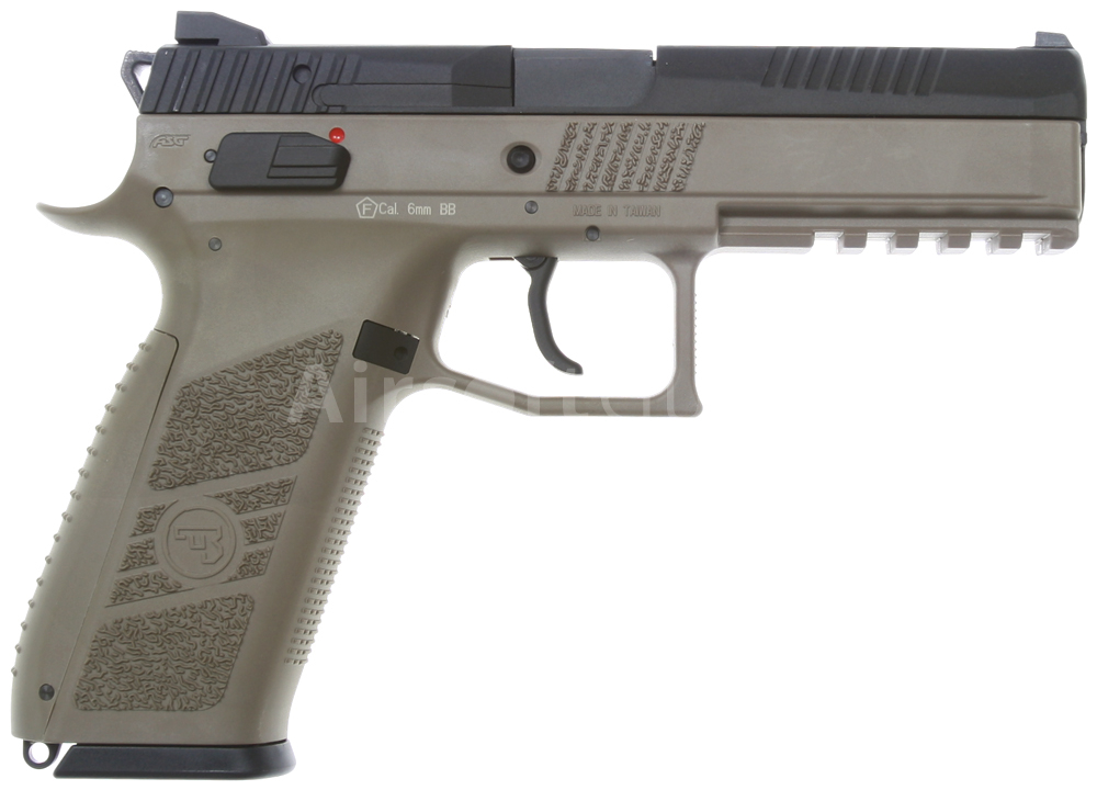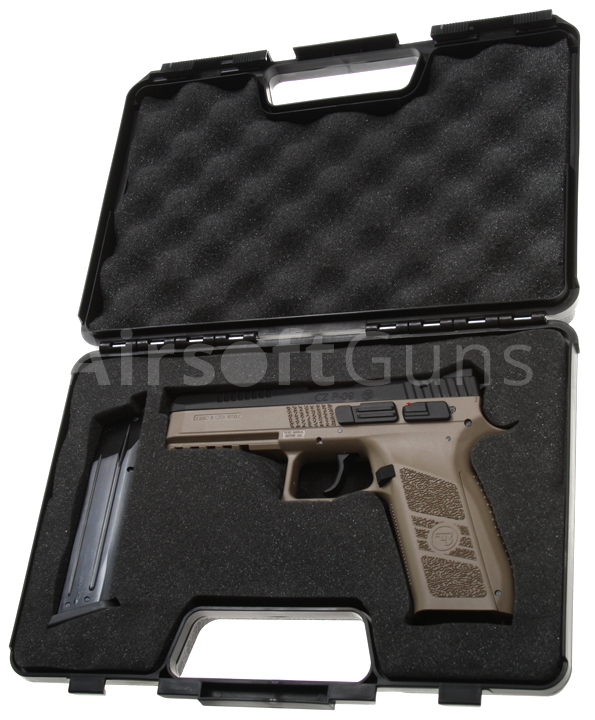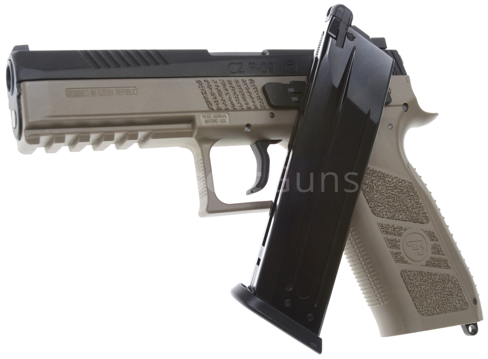 Plynová airsoftová zbraň se systémem Blow Back a s originální ražbou na kovovém závěru. Celokovová replika modelu CZ P-09 v pískovém provedení (FDE) s černým závěrem je vyráběná v licenci ASG. Věrohodně zpracovaná pistole s regulovatelným Hop-Up systémem, pohyblivým závěrem a funkčním záchytem závěru. Skvěle propracovaný ergonomický model se dále vyznačuje realisticky shodnou rozborkou a všemi funkčními ovládacími prvky. RIS lišta před lučíkem umožňuje snadnou montáž taktického příslušenství a bodově zvýrazněná mířidla usnadní rychlejší zamíření. Komplet je dodávaný v pevném kufříku, který je vhodný pro transport i bezpečné uskladnění pistole s jedním rezervním zásobníkem.