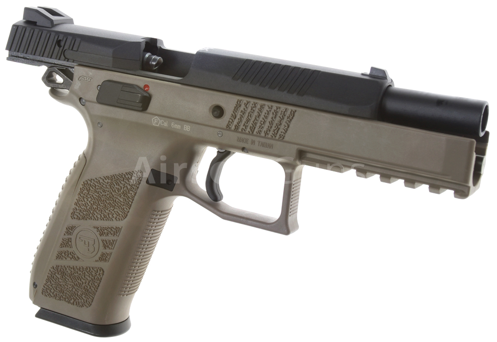 Plynová airsoftová zbraň se systémem Blow Back a s originální ražbou na kovovém závěru. Celokovová replika modelu CZ P-09 v pískovém provedení (FDE) s černým závěrem je vyráběná v licenci ASG.