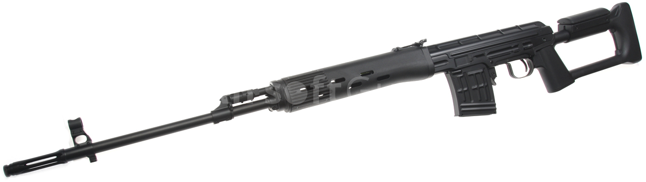 Elektrická airsoftová zbraň. Replika modernizovaného modelu Dragunov SVD [CM.057T] Cyma Standard Edition v celokovovém provedení v černé barvě.