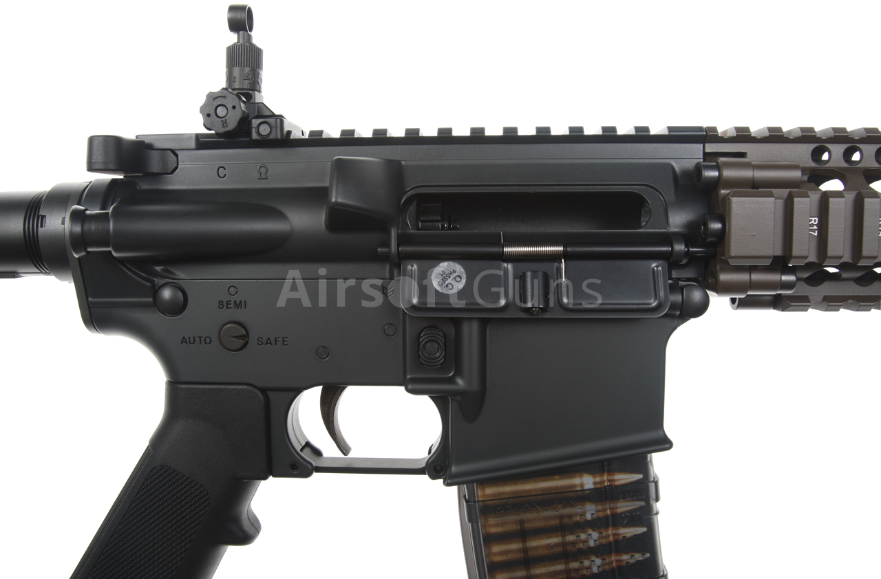 EMG Colt MK18 10.5 Inch Mod 1, DD RII, GBBR, Black/Brown Two Tone, Cyma CGS, COLT.1001