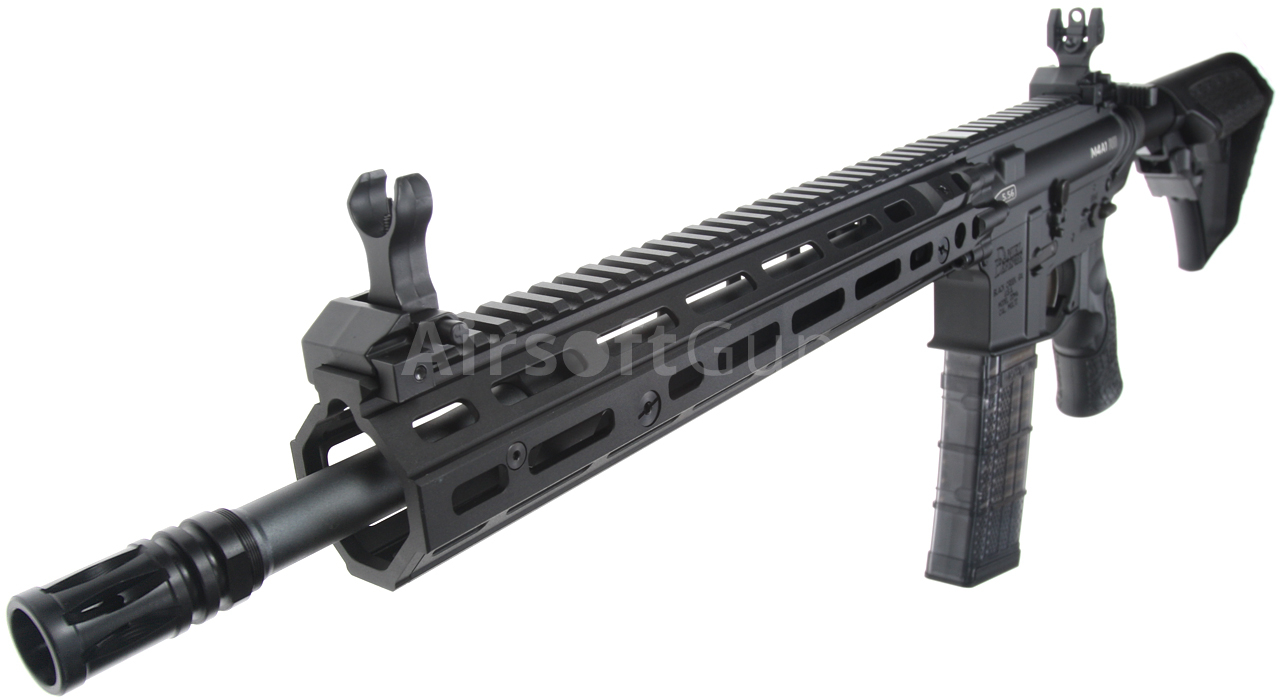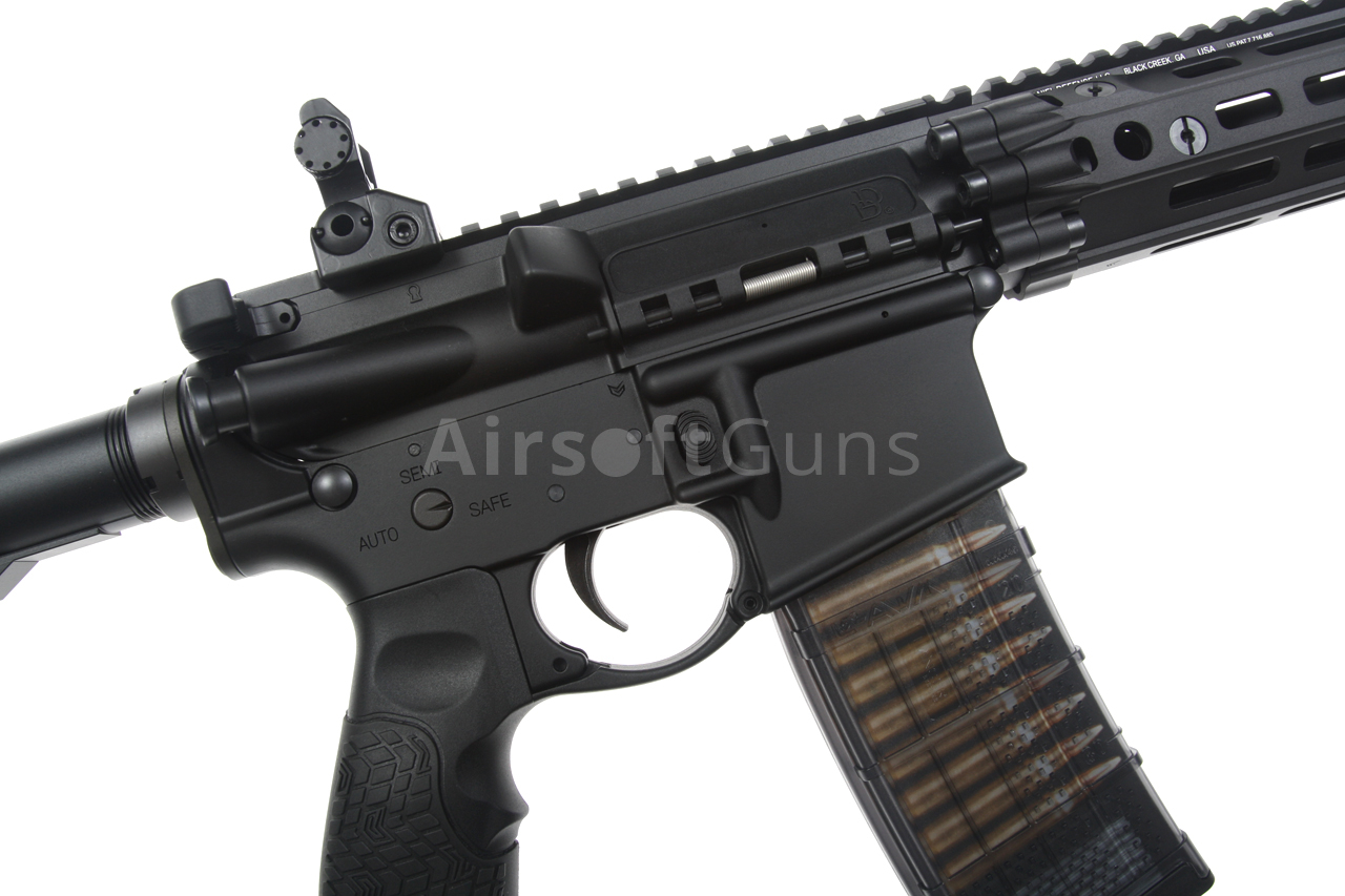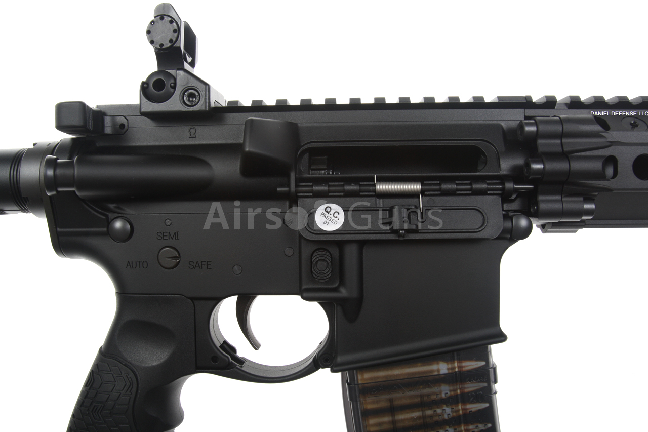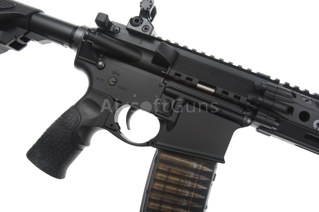 Tato verze klasické karabiny AR15 nabízí nádherně zpracované tělo v černé barvě s originální ražbou Daniel Defense (licencováno EMG) a unikátním sériovým číslem. Zbraň je osazena moderním CNC kovovým předpažbím RIII M-Lok (12,5 palců), které je mnohem lehčí a užší než běžné RISko a proto zaručuje skvělý úchop. Moderní M-Lok systém umožňuje montáž taktického příslušenství dle preferencí každého uživatele.