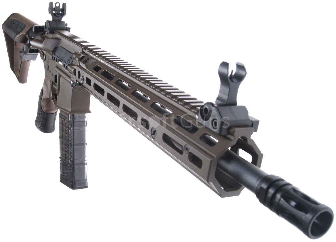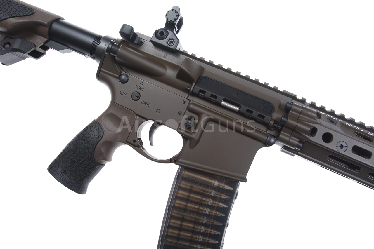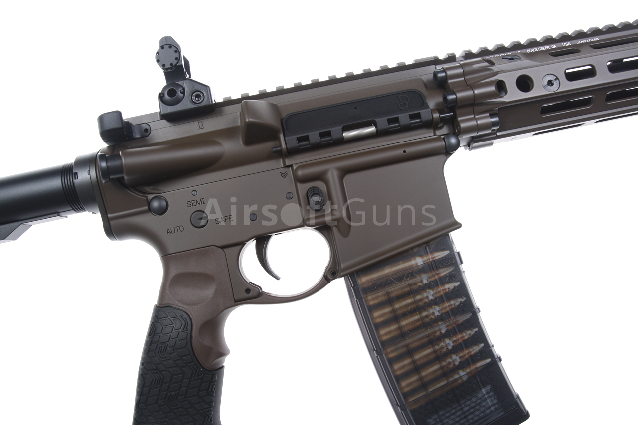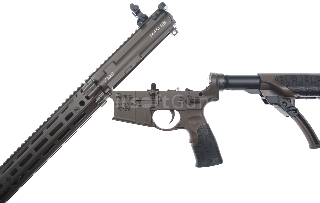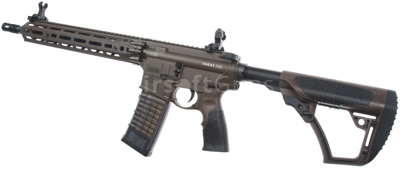 Tato verze klasické karabiny AR15 nabízí nádherně zpracované tělo v tmavě hnědé barvě s originální ražbou Daniel Defense (licencováno EMG) a unikátním sériovým číslem. Zbraň je osazena moderním CNC kovovým předpažbím RIII M-Lok (12,5 palců), které je mnohem lehčí a užší než běžné RISko a proto zaručuje skvělý úchop. Moderní M-Lok systém umožňuje montáž taktického příslušenství dle preferencí každého uživatele.