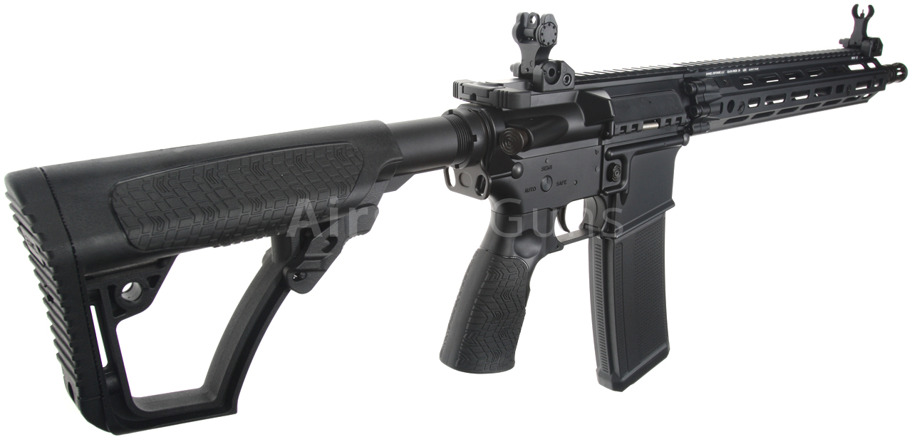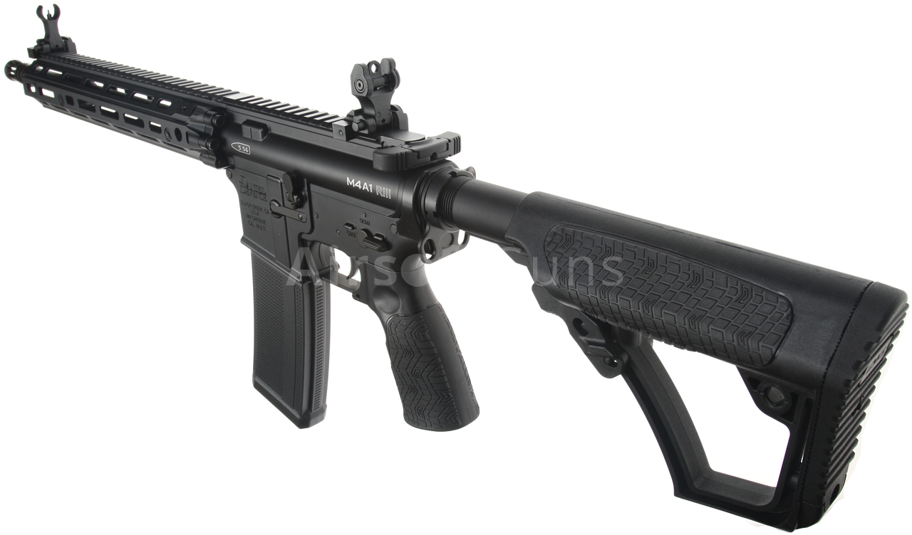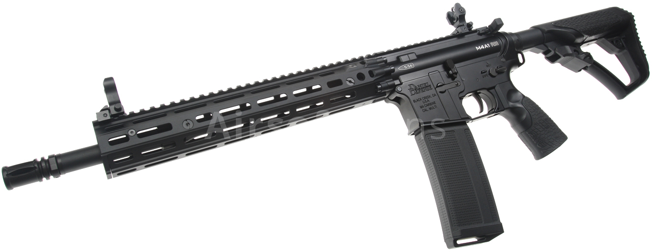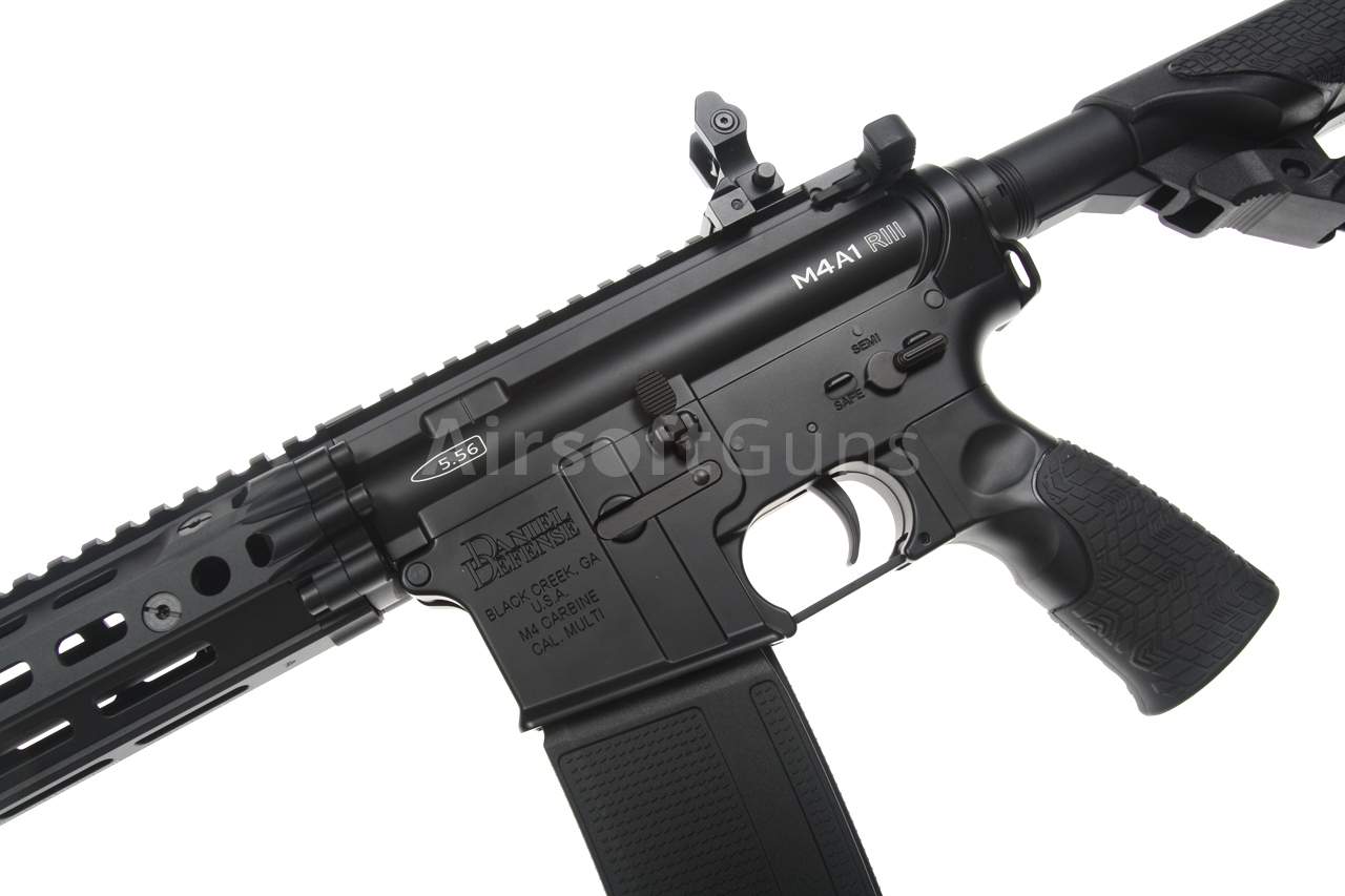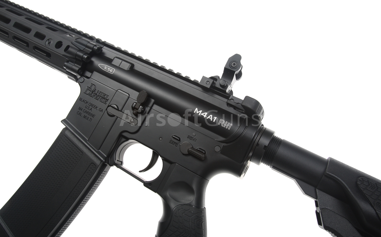 Zbraň je v základu osazena dvojicí sklopných a plně seřiditelných kovových mířidel. I přesto se zde nabízí snadná montáž zaměřovače typu kolimátor, nebo puškohledu se zvětšením. Pažbička Daniel Defense přesně lícuje s tělem a nabízí maximální ergonomii úchopu. K uchycení popruhu slouží oboustranné ocelové poutko mezi tělem a trubicí pažby, nebo QD otvory na pažbě a předpažbí. Zbraň má plně funkční výhozné okénko, plně funkční tlačítko záchytu závěru (bolt catch) i táhlo závěru. Funkce doražeče závěru je také věrně imitační. Tato replika je prostě vyladěna k dokonalosti i po stránce věrné imitace palné zbraně. Žádné šizení, na které jsme zvyklí u jiných a mnohdy dražších výrobců.