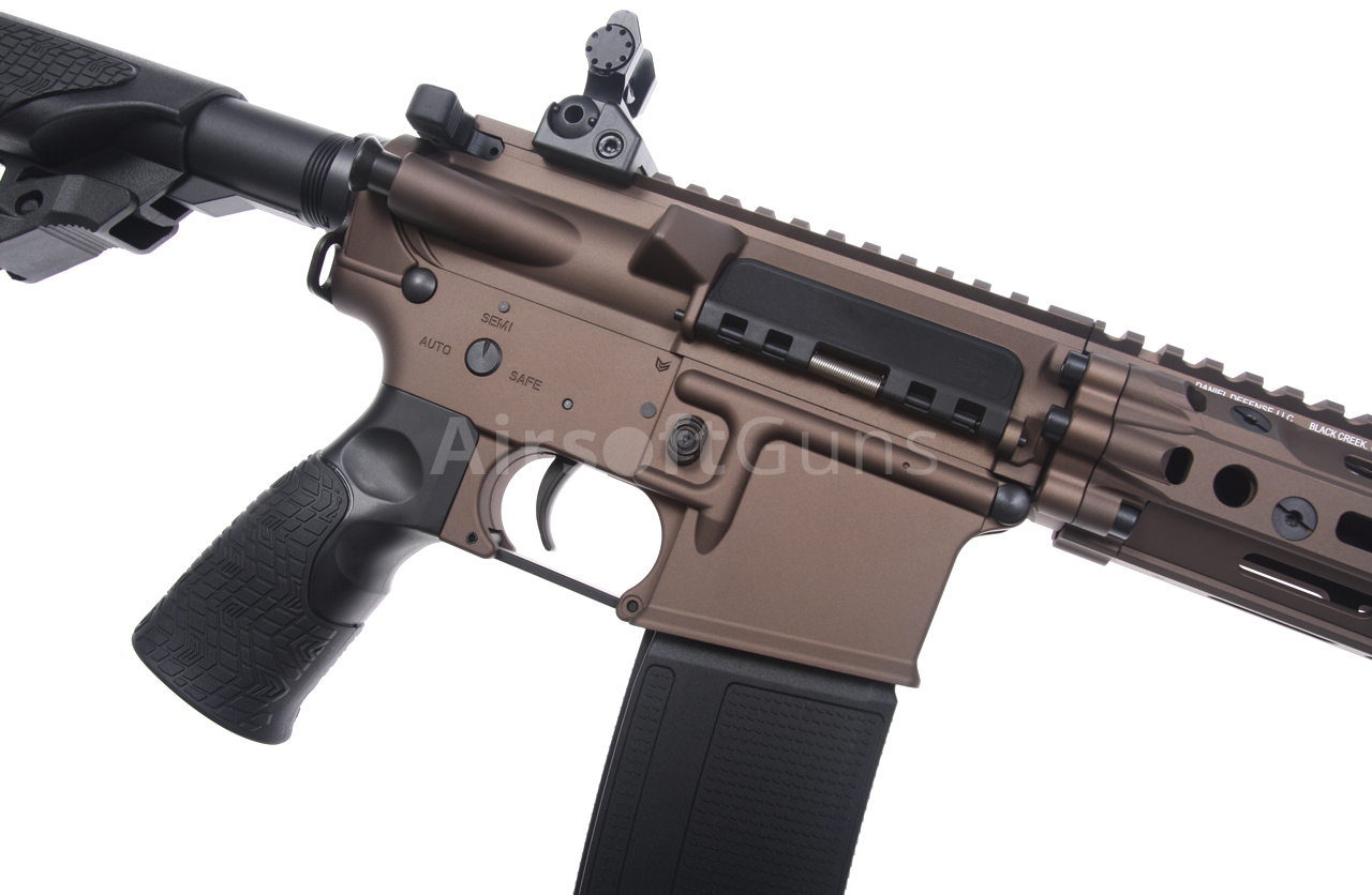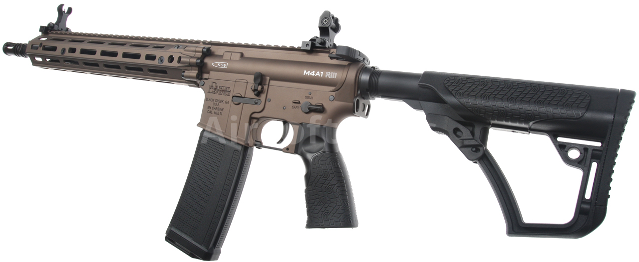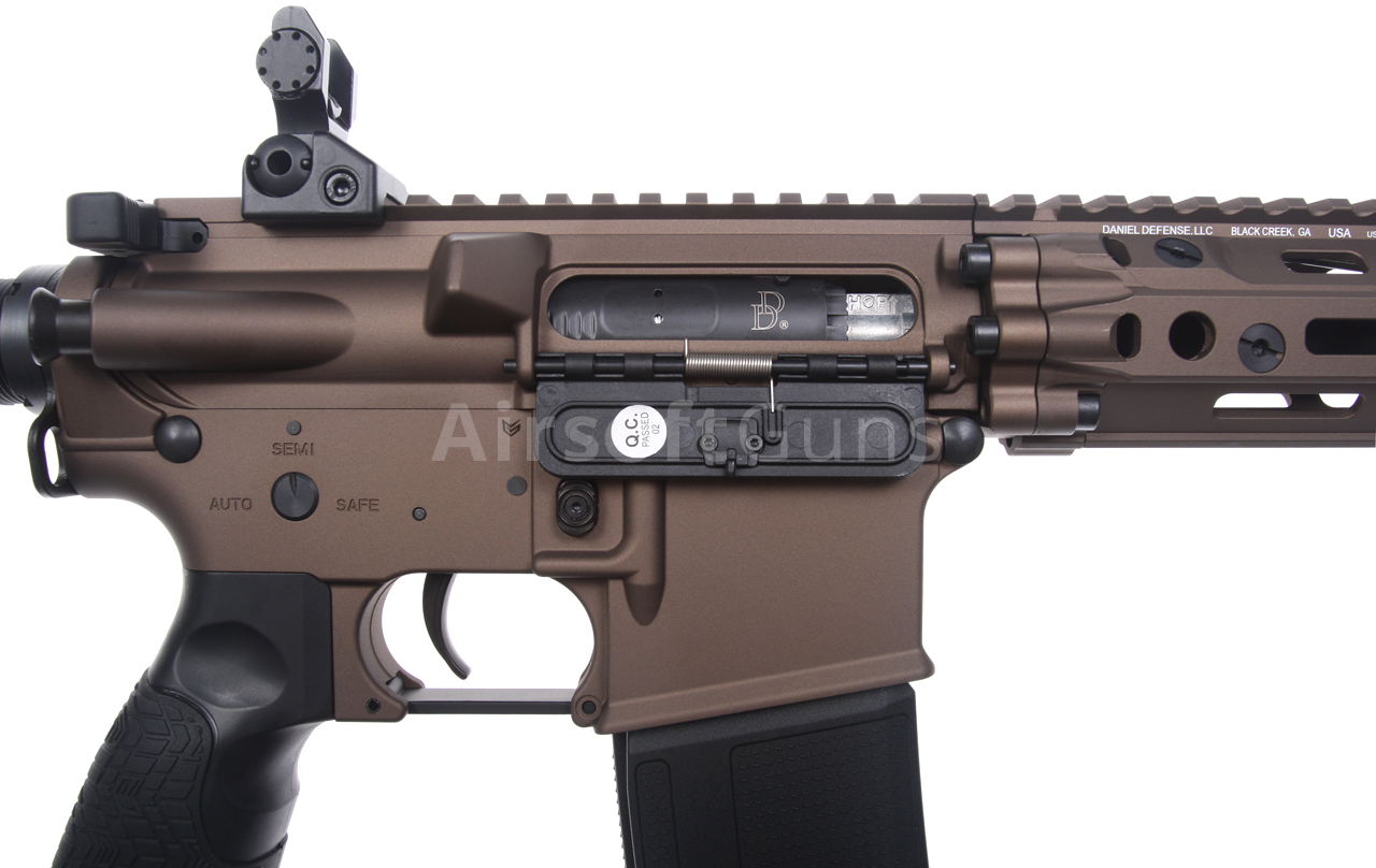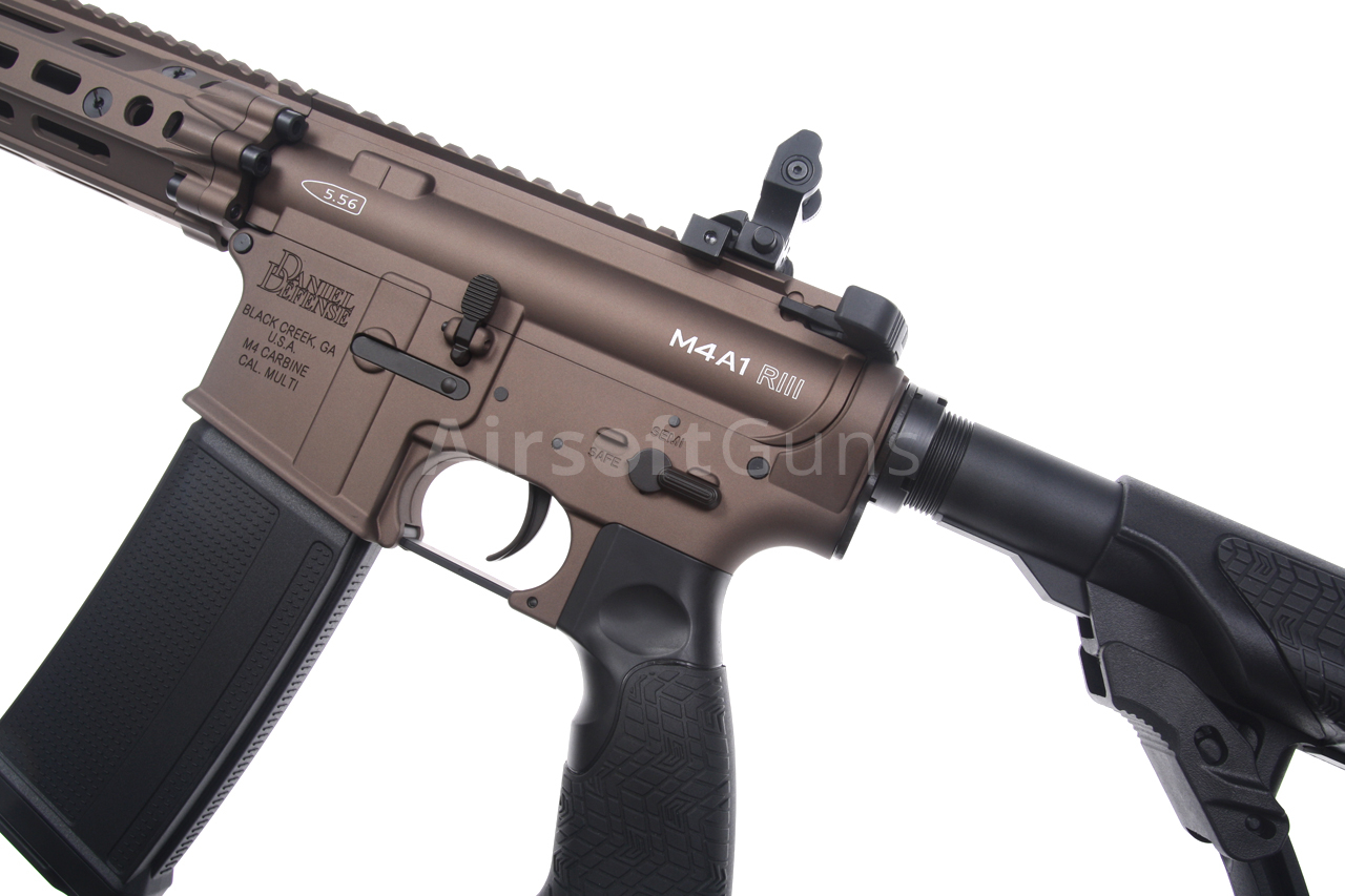 Zbraň je v základu osazena dvojicí sklopných a plně seřiditelných kovových mířidel. I přesto se zde nabízí snadná montáž zaměřovače typu kolimátor, nebo puškohledu se zvětšením. Pažbička Daniel Defense přesně lícuje s tělem a nabízí maximální ergonomii úchopu. K uchycení popruhu slouží oboustranné ocelové poutko mezi tělem a trubicí pažby, nebo QD otvory na pažbě a předpažbí. Zbraň má plně funkční výhozné okénko, plně funkční tlačítko záchytu závěru (bolt catch) i táhlo závěru. Funkce doražeče závěru je také věrně imitační. Tato replika je prostě vyladěna k dokonalosti i po stránce věrné imitace palné zbraně. Žádné šizení, na které jsme zvyklí u jiných a mnohdy dražších výrobců.