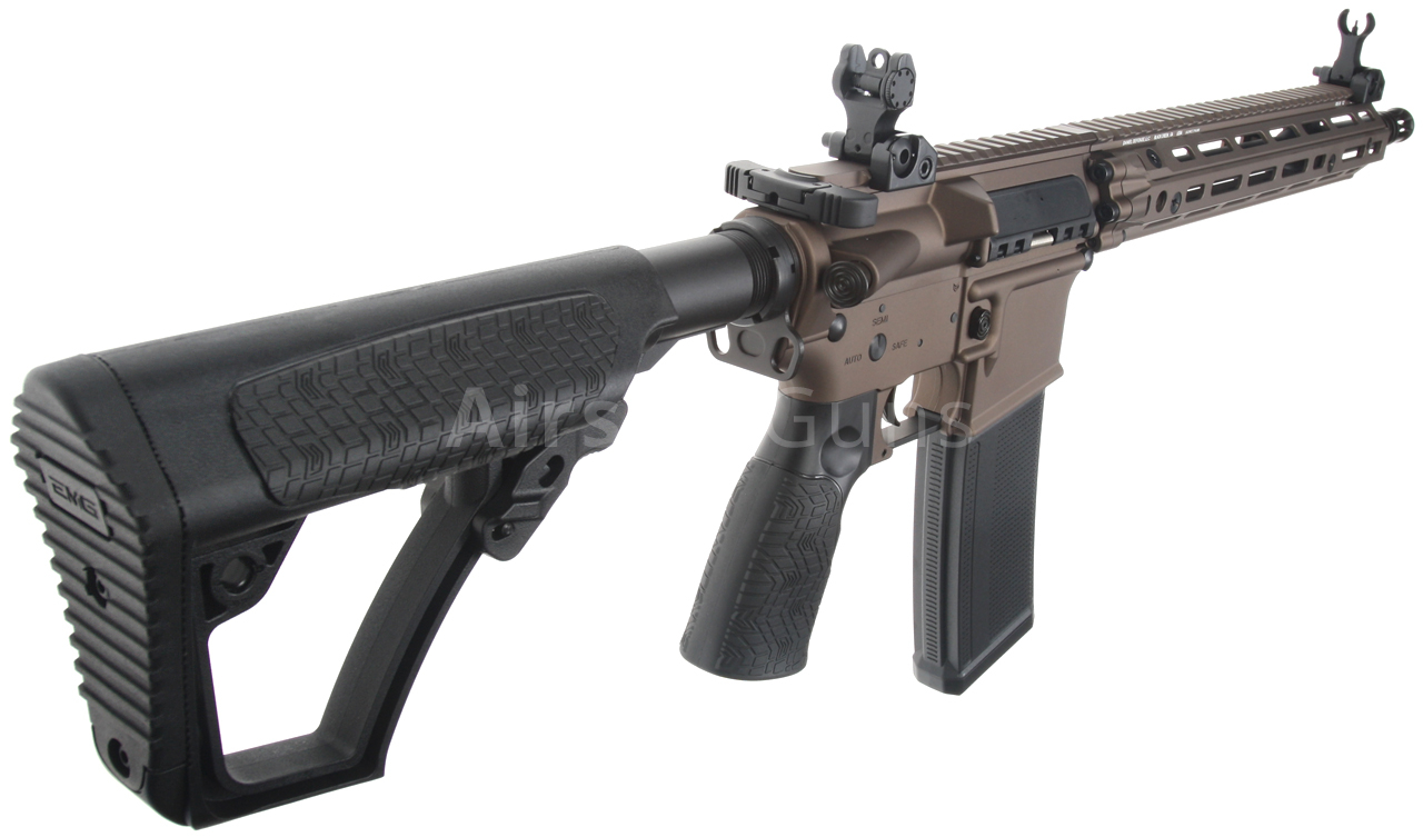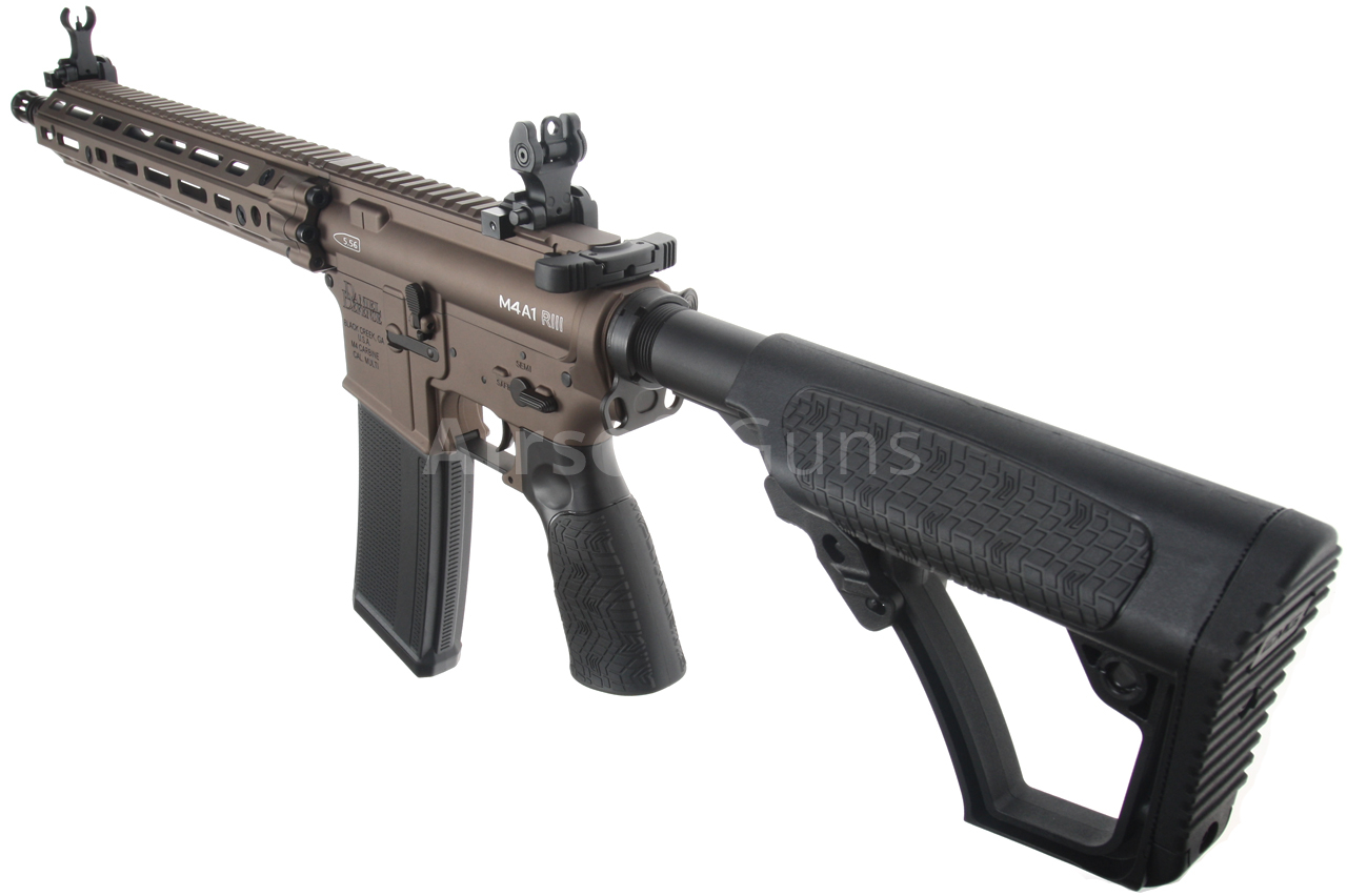 Zbraň je vybavena teleskopicky zásuvnou pažbou Daniel Defense, která nabízí 6 poloh délkového nastavení a umožňuje vložení doporučeného typu LiPol baterie. Kovová vnější hlaveň o délce 14,5 palce je osazena klasickým kompenzátorem M4A1, který je našroubovaný na 14 mm levotočivém závitu.