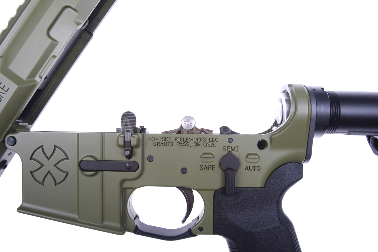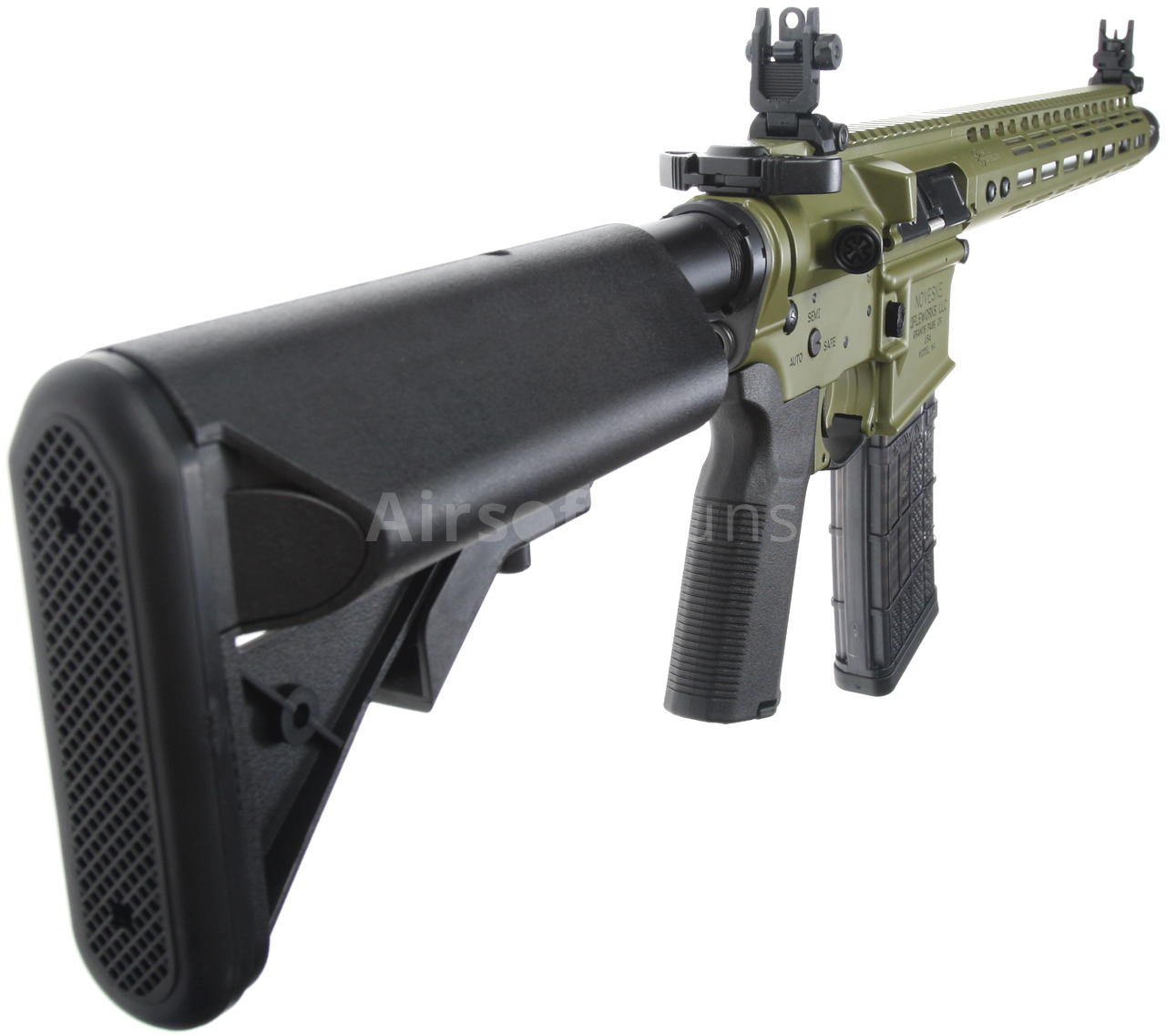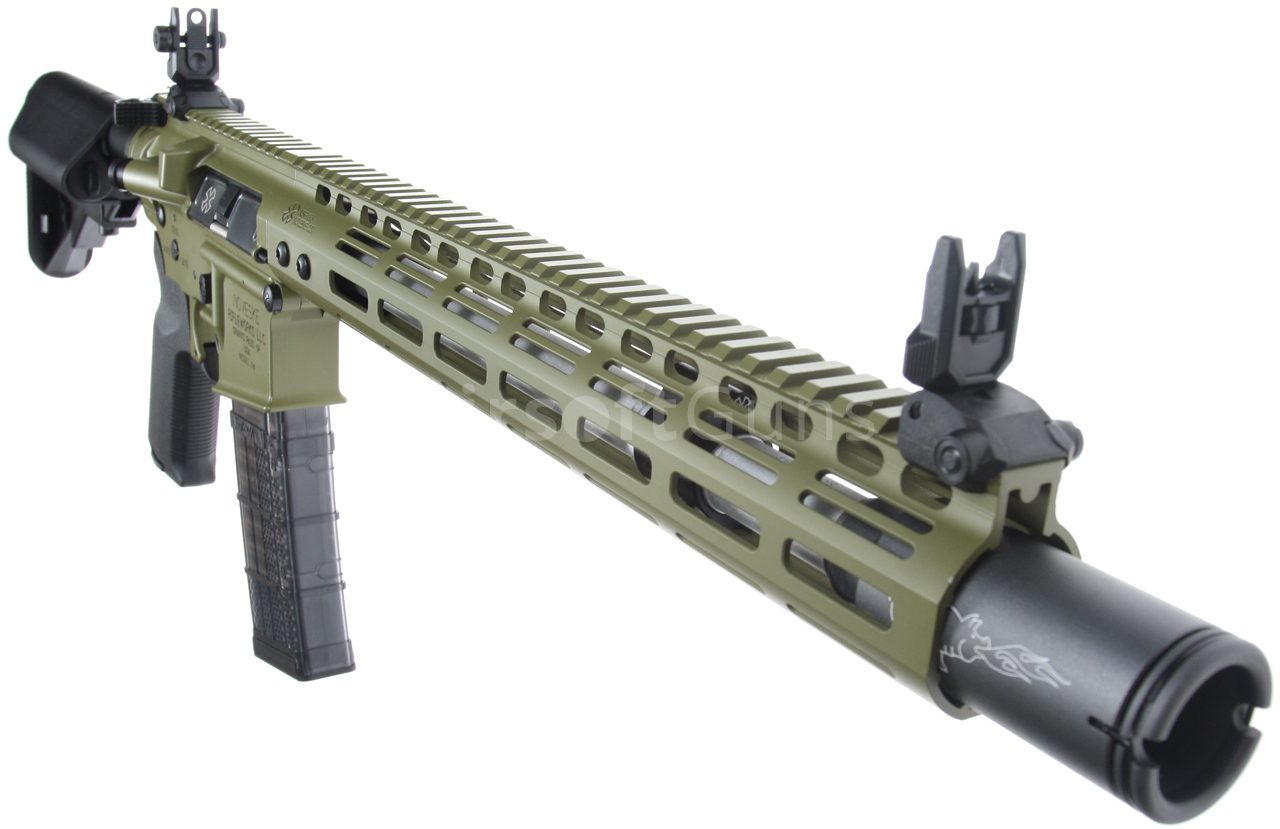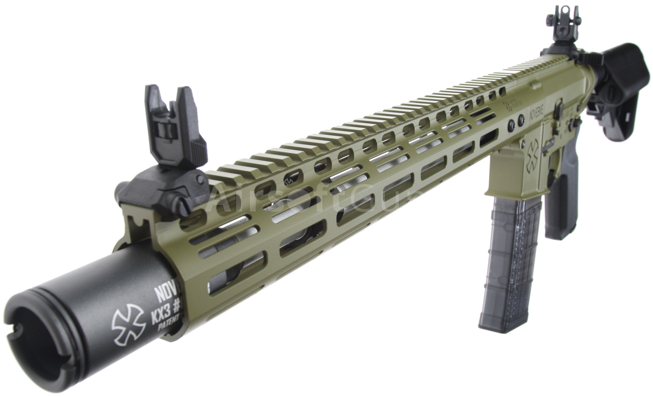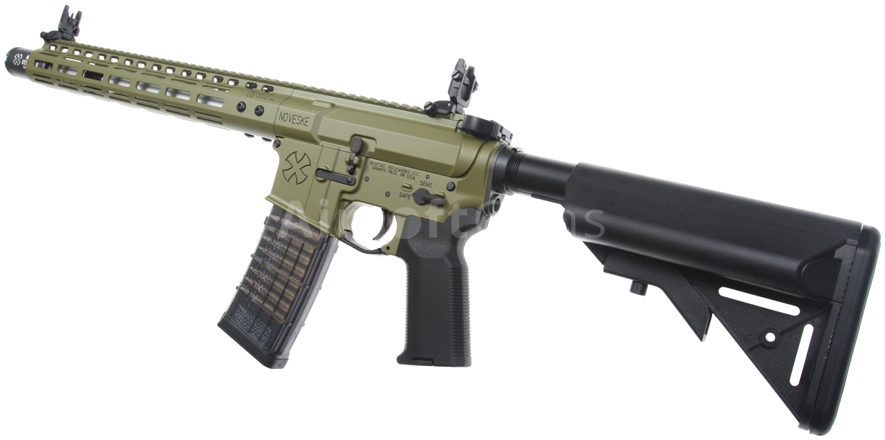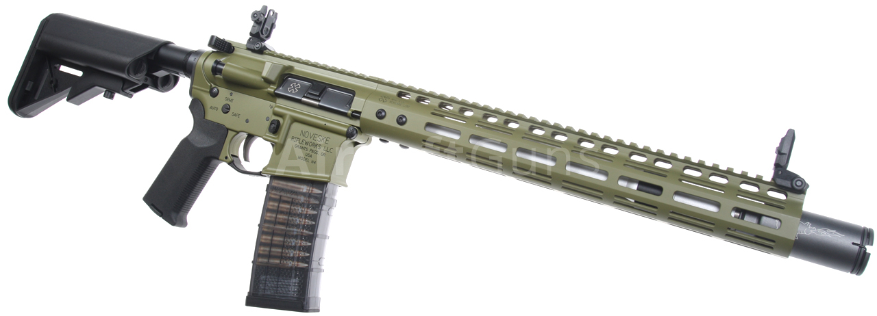 Tato verze klasické karabiny AR15 nabízí nádherně zpracované tělo v barvě Bazooka Green s originální ražbou Noveske (licencováno EMG) a unikátním sériovým číslem. Zbraň je osazena moderním CNC kovovým předpažbím Noveske NSR-13.5 M-Lok (délka 13,5 palců), které je mnohem lehčí a užší než běžné RISko a proto zaručuje skvělý úchop. Moderní M-Lok systém umožňuje montáž taktického příslušenství dle preferencí každého uživatele.