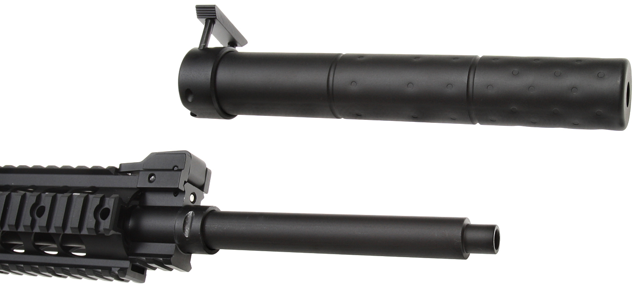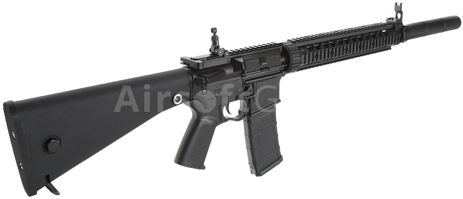 Zbraň pochází z nejnovější edice, která má nově zpracované tělo s funkčním výhozným okénkem, táhlem závěru a plechovou imitací závěru. Další modifikací pro lepší manipulaci např. i v rukavicích jsou zvětšený lučík, vyšší přepínač režimu střelby a oboustranný vypouštěč zásobníku s lépe dostupnými tlačítky. Přesná DMR varianta je osazena dlouhou těžkou hlavní bez kompenzátoru a dvojicí sklopných mířidel KAC, mezi které je možné připevnit různé optiky nebo kolimátory. Přes vyčnívající část vnější hlavně lze přesunout dodávaný tlumič a pomocí QD zámku rychle aretovat v místě plynového bloku. Zbraň se vyznačuje také Magpul PTS MOE pažbičkou a pevnou pažbou s délkovou regulací koncové patky.
