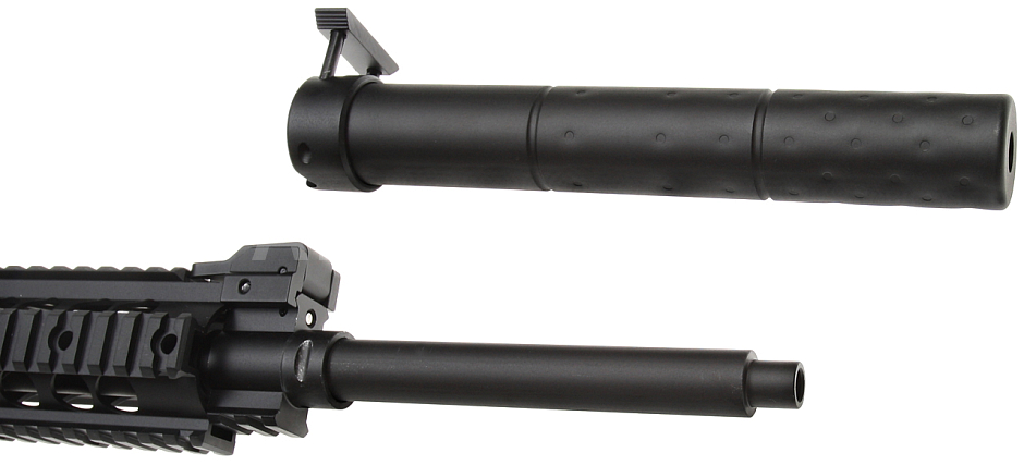 AirsoftGuns: Výšlehák by se musel vysoustružit dle rozměru a osazení na hlavni. Pak by se fixoval třeba drobným červíkem na imbus. Vnější hlaveň jinak závit nemá (jako např. běžná M4/M16).