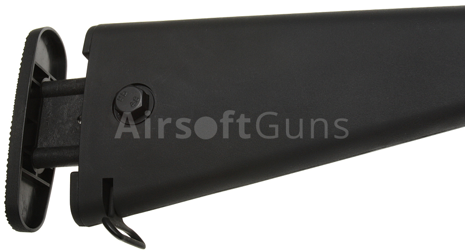 Kovový zesílený mechabox obsahuje kvalitní ocelová kola, precizní kluzná 8 mm ložiska (cross slot), pružinu na úrovni M125, kovový vodič pružiny s ložiskem, zesílenou hlavu válce a protitlakou hlavu pístu. V základu jistě potěší i jednodílná kovová Hop-Up komora a hlaveň bez dodatečných povrchových úprav o vnitřním průměru 6,08 mm. Součástí balení je nabíječka, akumulátor 9,6V/1200 mAh (malý konektor), plastový vytěrák na čištění hlavně a vysokokapacitní zásobník na 400 BB (Hicap).