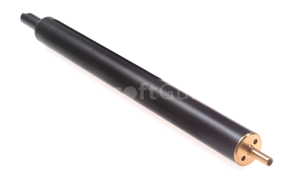 Nerezový válec s hlavou pro M40 CM.700/700a/708, Black, Cyma, C.275B. Zesílený válec z nerezové ocele pro pušky typu M40 (CM.700/700a) a R700 XLR (CM.708) od firmy Cyma. Černá barva zajistí krásný a realistický vzhled zbraně. Precizní a odolný válec vyrobený na CNC strojích je jeden z nutných dílů při upgrade zbraně na silnější pružinu. Nerezový bezešvý válec a zadní stopka natahovací páky jsou k sobě svařeny po celém obvodu, tudíž je zaručena vysoká pevnost v tahu. Vnitřní povrch byl vyleštěn, aby se snížilo tření, zlepšila účinnost a zabránilo se nadměrnému opotřebení při použití silných pružin. Mosazná hlava válce má uvnitř kuželový tvar pro lepší proudění vzduchu do trysky a konec závitu je opatřen gumovým kroužkem pro maximální těsnost. Černá barva nerezové ocele byla docílena speciálním chemickým postupem. Upgrade díl první volby pro vaší sniper pušku od firmy Cyma.