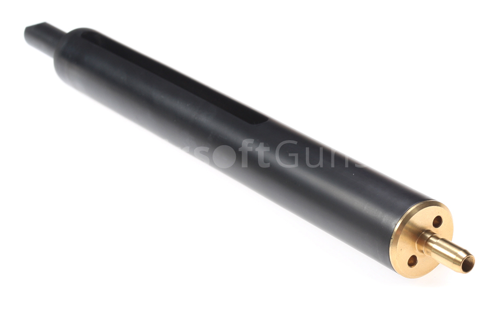 Nerezový válec s hlavou pro R700 MDT CM.707, Black, Cyma, C.279B. Zesílený válec z nerezové ocele pro pušky typu R700 MDT (CM.707) od firmy Cyma. Černá barva zajistí krásný a realistický vzhled zbraně. Precizní a odolný válec vyrobený na CNC strojích je jeden z nutných dílů při upgrade zbraně na silnější pružinu. Nerezový bezešvý válec a zadní stopka natahovací páky jsou k sobě svařeny po celém obvodu, tudíž je zaručena vysoká pevnost v tahu. Vnitřní povrch byl vyleštěn, aby se snížilo tření, zlepšila účinnost a zabránilo se nadměrnému opotřebení při použití silných pružin. Mosazná hlava válce má uvnitř kuželový tvar pro lepší proudění vzduchu do trysky a konec závitu je opatřen gumovým kroužkem pro maximální těsnost. Černá barva nerezové ocele byla docílena speciálním chemickým postupem. Upgrade díl první volby pro vaší sniper pušku od firmy Cyma.