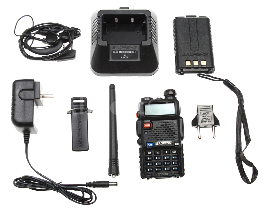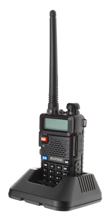 Ruční profesionální dualbandová radiostanice UV-5R od značky Baofeng. Provoz bez poplatků a zvláštních povolení a snadné ovládání. Stanice se prodává společně s Li-Ion akumulátorem 1800 mAh a nabíječkou.Baofeng UV-5R je kompaktní dualbandová radiostanice, která pracuje jak v pásmu VHF 136-174MHz, tak UHF 400-520 MHz. Dlouhá anténa a kvalitní obvody zaručují maximální dosah a čistotu signálu. Stanice je plně programovatelná a má funkce jako Roger beep (potvrzovací tón), šetření baterie ve 4 stupních a indikátor nízkého stavu, time-out timer (omezení délky vysílání), monitorování kanálů, zamknutí klávesnice, hlasovou navigaci v anglickém jazyce, funkce VOX s 10ti stupni citlivosti, identifikace ANI-ID, PTT-ID. Jistě potěší i LCD displej s 3 barvami podsvícení. Stanice dále nabízí 128 paměťových kanálů, 50 voleb CTCSS and 104 DCS, citlivé FM radio 65.0MHz-108.0MHz (možný poslech rádia a zároveň hlídání kanálu, kdy při zjištění signálu se stanice automaticky přepne) a nadstandardně i LED svítilnu.