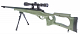 Manuální airsoftová zbraň. Replika modelu VSR [MB10D] s plastovým zeleným pažbením v odlehčeném stylu. Tento speciální model se dále vyznačuje robustní kovovou hlavní s kanelováním, poutky na přidělání nosného popruhu a krátkou přední RIS lištou pro připevnění dvojnožky nebo jiného taktického příslušenství. Ústí hlavně již na první pohled zaujme specifickým kompenzátorem. RIS lišta na horní části kovového pouzdra závěru slouží k uchycení montážních kroužků se zaměřovačem. Regulovatelný Hop-Up systém je možné snadno a rychle upravovat malou páčkou na vnější straně předpažbí. V celkové ceně je započtena i výškově nastavitelná/sklopná dvojnožka a kvalitní optika 3-9x40 s příslušnou montáží. Balení dále obsahuje rychloplničku, vyrážeč kuliček, popruh a zásobník s kapacitou 30 kuliček.