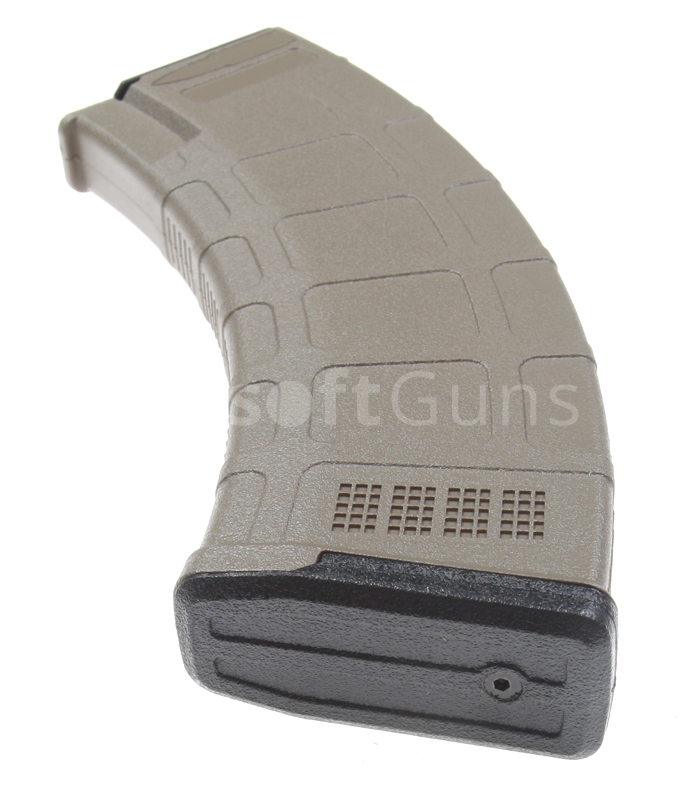 Zásobník AK, 150 BB, PMAG, nylon, TAN, Cyma, C.190A. Tlačný zásobník (Midcap) pro AEG zbraně typu AK a AKM od firmy Cyma. Zásobník v pískové barvě TAN je vyroben z extrémně odolného nylonového polymeru. Styl provedení PMAG Magpul PTS. Kapacita 150 BB.